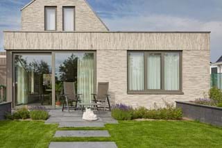 De villa is voorzien van fraai metselwerk, gekozen is voor de Petersen Kolumba steen. De steen is zowel horizontaal als verticaal gebruikt en zelfs de plafonds zijn van metselwerk. Verder is de woning voorzien van triple glas, bodemwarmtepomp en blowerdoortest. De villa is ontworpen door WnS Architecten.