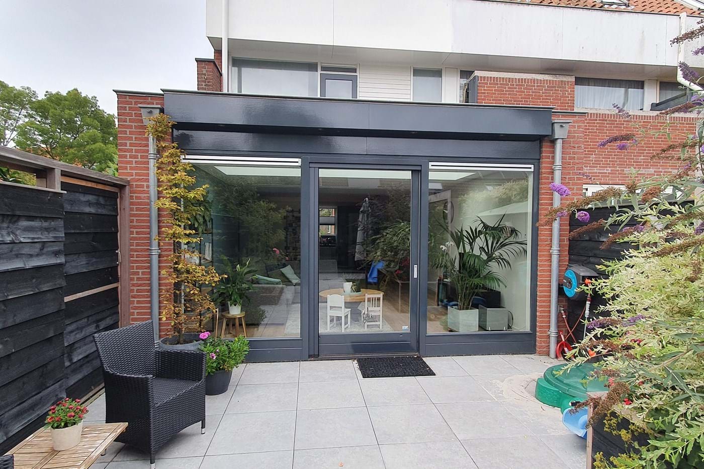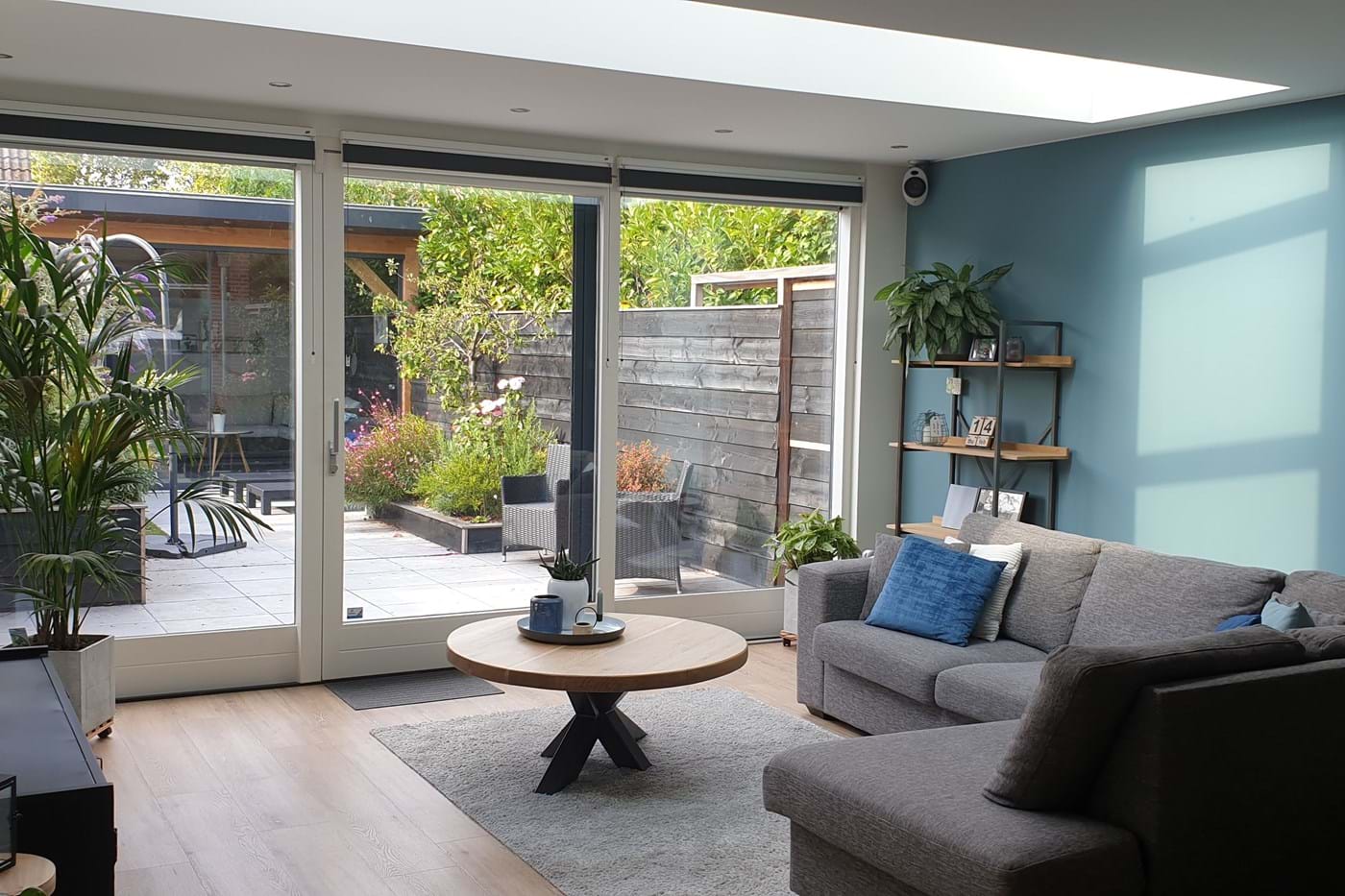 Deze klant wilde graag meer leefruimte creƫren in deze eengezinswoning in Naaldwijk. Op de begane grond hebben we een diepe aanbouw van 3 meter gerealiseerd afgewerkt met veel glas en een handige schuifpui. Om voldoende licht te houden in de woonkamer, is er gekozen voor een mooie lichtstraat in het plafond. Op de tweede etage hebben we een dakkapel gerealiseerd. Hiermee ontstond er ruimte om zowel een slaapkamer als badkamer op de tweede etage te realiseren.