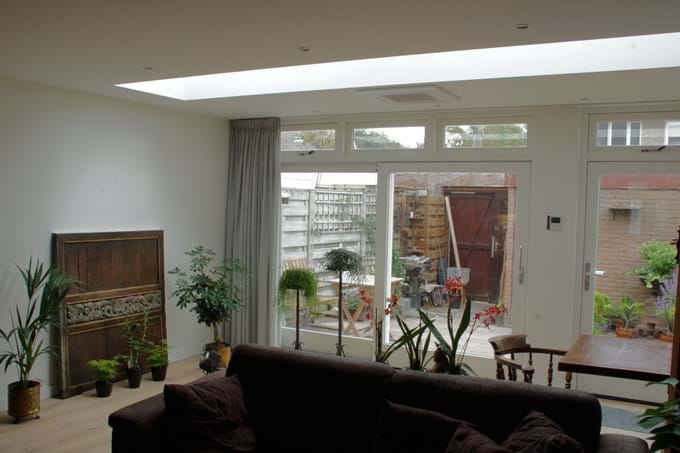 Vanaf het eerste oriëntatie gesprek tot het accepteren van de offerte kwamen er zaken naar boven om over na te denken en er is nog redelijk wat veranderd, er wordt met je meegedacht en dat is heel fijn. Zo is er o.a. uiteindelijk gekozen voor warmte-werend glas in de schuifpui en lichtstraat, zelf was ik niet op het idee gekomen.