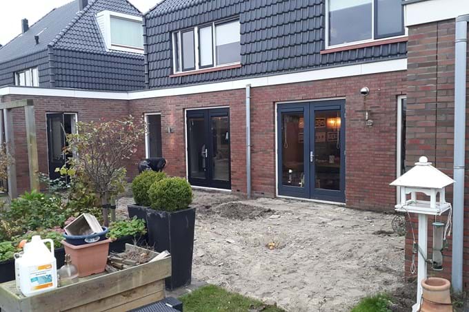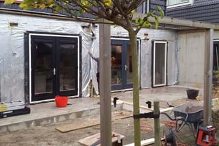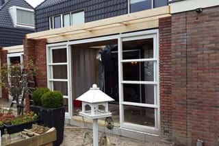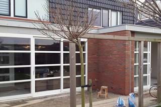 Twee buren hadden beiden de wens om meer leefruimte te creëren op de begane grond. Door deze opdracht tegelijk uit te voeren, konden we erg efficiënt werken. Ondanks dat beide buren andere wensen hadden voor de uitbouw, resulteerde de uitbouwen in een mooi geheel door dezelfde afwerking aan de buitenzijde. De ramen en schuifpui zorgen voor extra licht in de woonkamer.